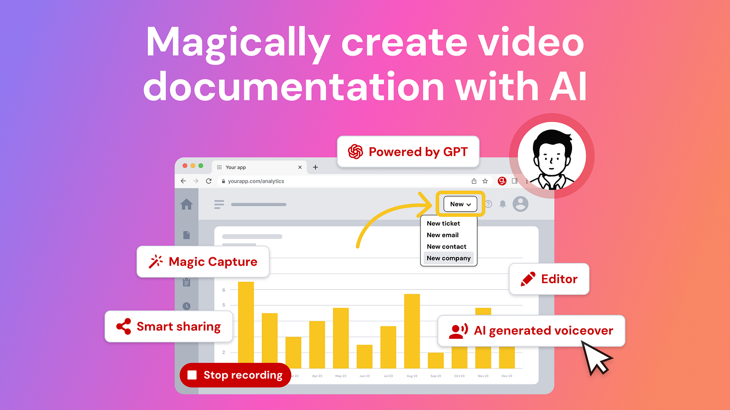 It’s time to delegate that work to AI. Guidde is a GPT-powered tool that helps you explain the most complex tasks in seconds with AI-generated documentation.
