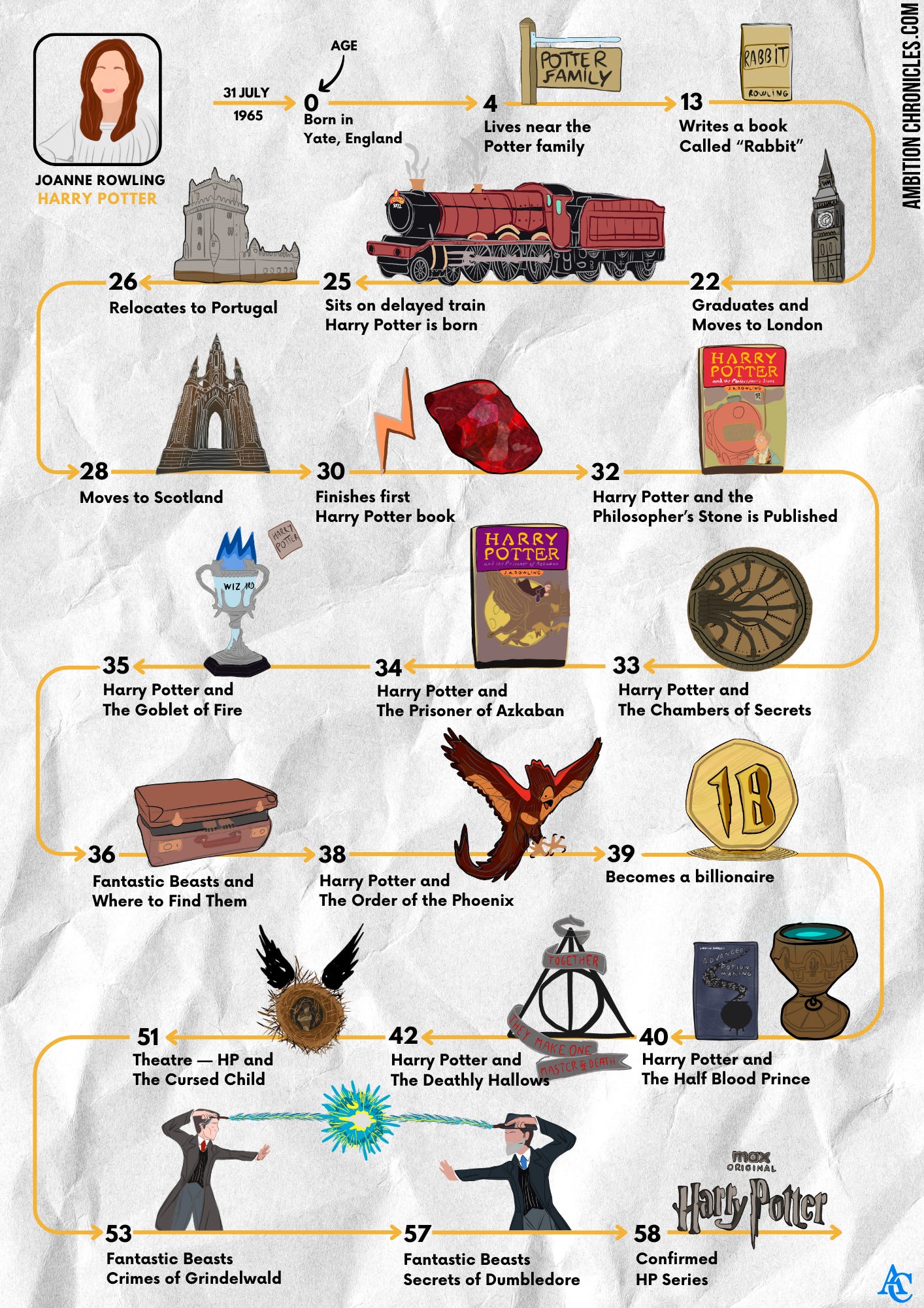After graduating from the University of Exeter at 22, she moved to London. The concept of Harry Potter struck her at 25 during a delayed train ride.
